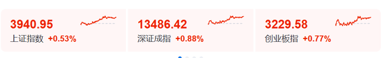 12月24日,A股全天走强,三大指数集体上扬。截至收盘,沪指涨0.53%,深成指涨0.88%,创业板指涨0.77%。