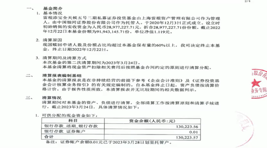 2022年10月左右,雷根添宝五号出现逾期,当年12月进入清算状态。