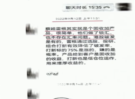 石敏推销时称,该产品由银河证券托管、投资策略稳健、以港股打新为主、风险较低,本质上属于“固收+”类别。